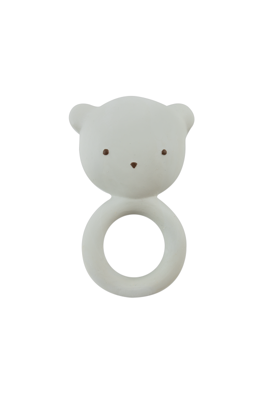 Un anneau de dentition en caoutchouc naturel issu de l’hévéa. Dessiné par la marque GOMMU basée à Barcelone, ce petit ours gris est idéal pour les petites mains! Derrière GOMMU se cache un tandem mère-fille qui a choisi ce matériau 100% biodégradable pour concevoir une gamme de jouets de dentition et de bain ludique et graphique, ainsi que des accessoires pour enfants.