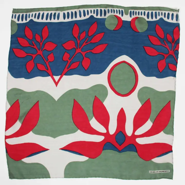 Dimensions : 50 x 50cm. 100% soie. Dessiné en France – Fabriqué en Inde