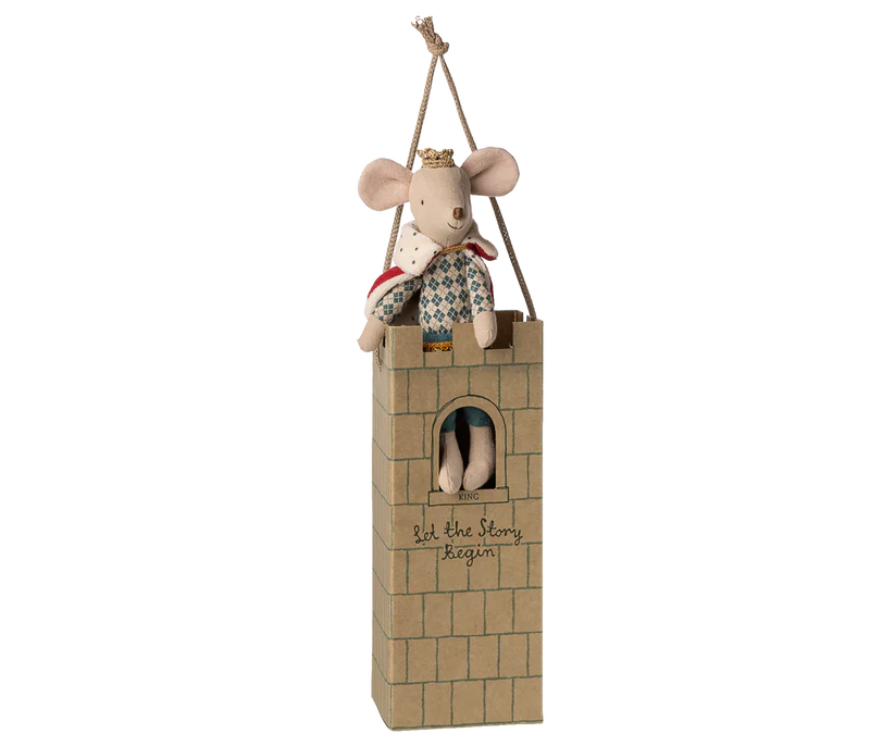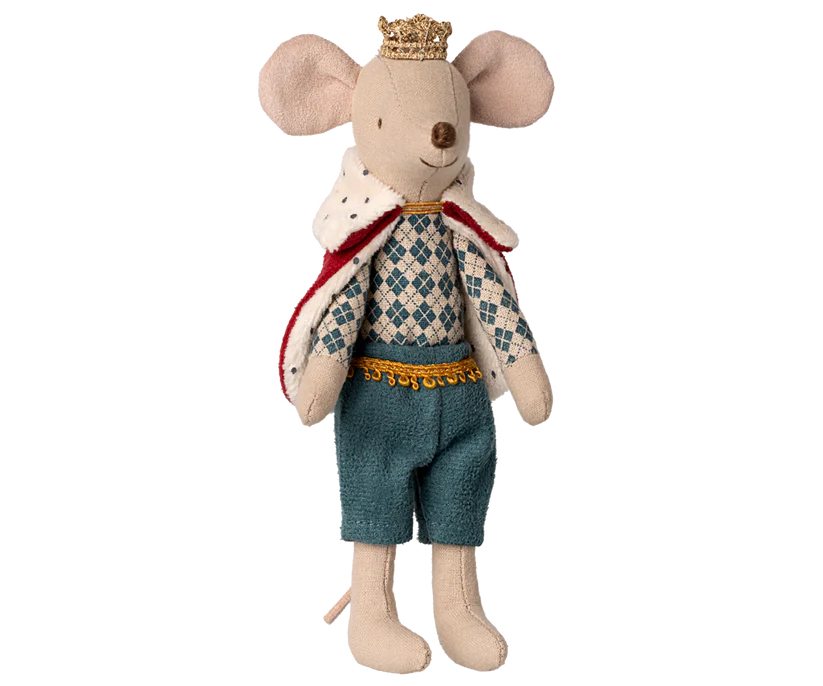Le Roi Souris de taille Papa (15cm) est prêt à recevoir ses invités, auprès de sa Reine, pour une célébration au château. Il porte une cape et une couronne, et s’adapte parfaitement au Hall du château.