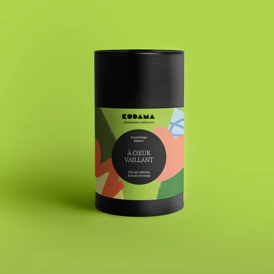 Kodama Paris crée des thés et infusions aux mélanges originaux et raffinés. Ces “alchimistes infuseurs” sont artisans Gault & Millau 2020 et 2021. Avec A Coeur Vaillant, création maison de la marque, le thé vert sert l’alliance de la gourmandise d’oranges pulpeuses et la fraicheur de feuilles de menthe.